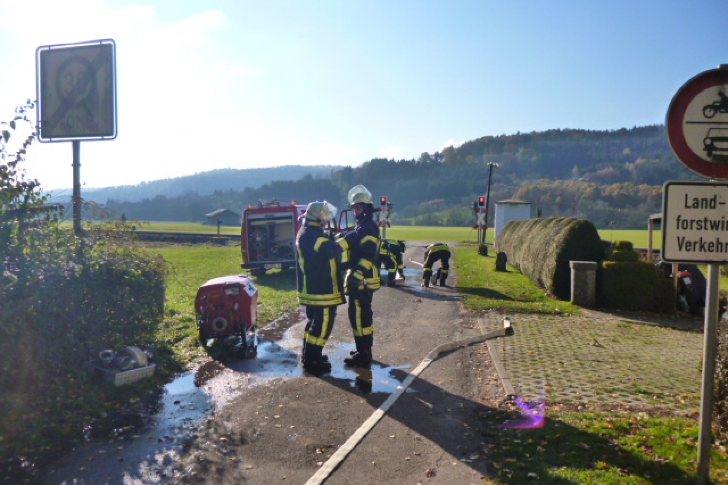 Beim Eintreffen der Feuerwehr Rudersberg, versuchte noch ein Bewohner des Hauses in der Gartenstrasse, mit einem Gartenschlauch das Feuer zu bekämpfen. Allerdings war der Erfolg mäßig, so dass dann die Feuerwehr Rudersberg die weiteren Löschmaßnahmen übernommen hat. Durch die Maßnahmen des Bewohners und der Feuerwehr, wurde ein ausbreiten der Flammen verhindert, so dass nur dieser Kellerraum durch den Brand stark beschädigt wurde.